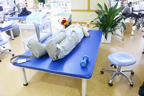 根据患者病情的需要选择适当的肌肉或肌群进行神经肌肉电刺激,以促进神经功能恢复,预防肌肉萎缩及维持肌肉的良好状况。充气压力波治疗、起立床站立训练等促进全身肢体循环。